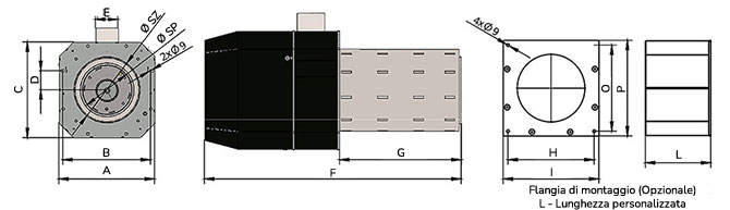 Schema dimensioni bruciatore 150 - 200 - 250kW